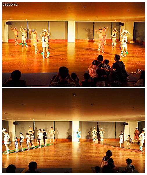 晚上20:30還有原住民舞蹈表演,本來應該在戶外中庭的,但因為還在下雨,就改到室內。除了舞蹈表演還會請觀眾一起上去互動同樂。