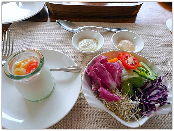 西式的早餐有生菜沙拉及水果優格,不吃優格的另有鮮奶玉米片可以選。