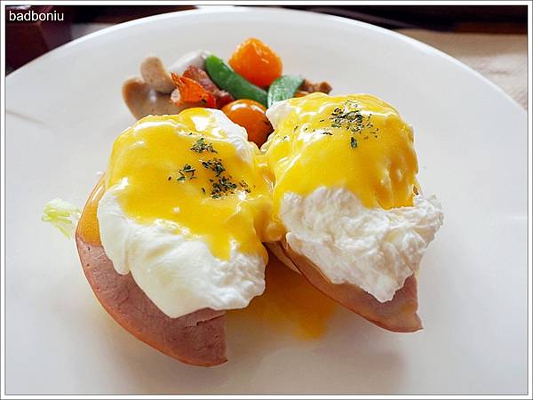 西式以蛋料理為主,有煎蛋、炒蛋、水煮蛋、蛋捲可以選,我們則選了班乃迪克蛋,是不是看起來很好吃啊?