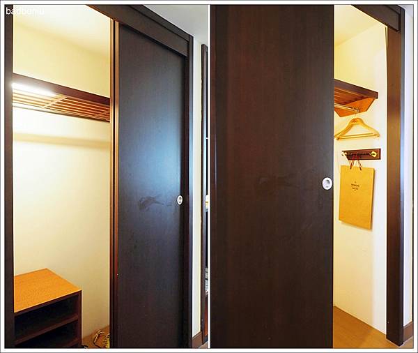 衣櫃空間很大,左邊門打開後的層櫃有體重計(沒拍到XD),右邊門打開有飯店的紙提袋。