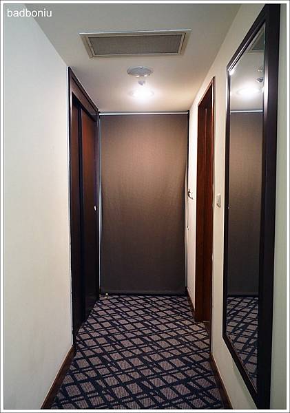 親子客房是兩間客房打通,所以這裡是以前客房的入口玄關,現在門已經封起來不用,只剩下通往浴室的功能。
