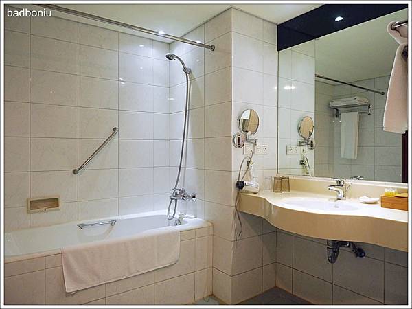 房間大,浴室空間也大;雖然浴室整個感覺參與了福華的光榮歷史,有點年紀了但整體維護的還不錯,而且乾乾淨淨。