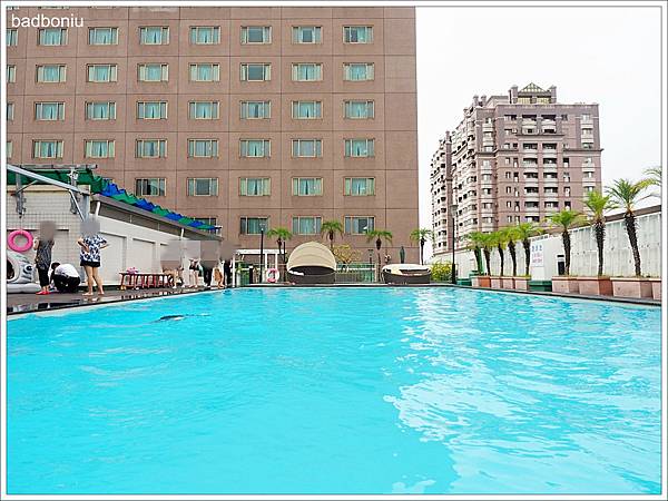 拍完房間,就是波妞期待的游泳泡水時間啦~飯店有附設泳池,是炎熱夏天中的消暑好去處。