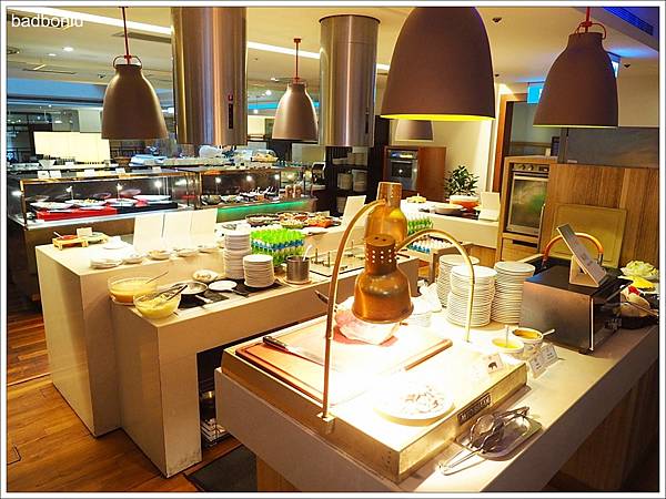 餐廳的餐檯有些不在同一區,餐盤也不是一般常見的放在餐檯下方而是放在牆邊的櫃子裡,波妞媽習慣的手往下拿餐盤當然就拿不到囉XD。不過其實也是因為這些是「冷藏櫃」啦,當然底下就無法放餐盤了,但這讓食材的保鮮度更佳!