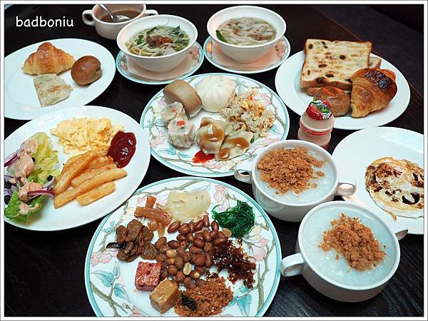 還有中式豆漿早餐店會有的饅頭、蘿蔔糕、煎餃、燒賣,也有炒青菜、蒸地瓜。