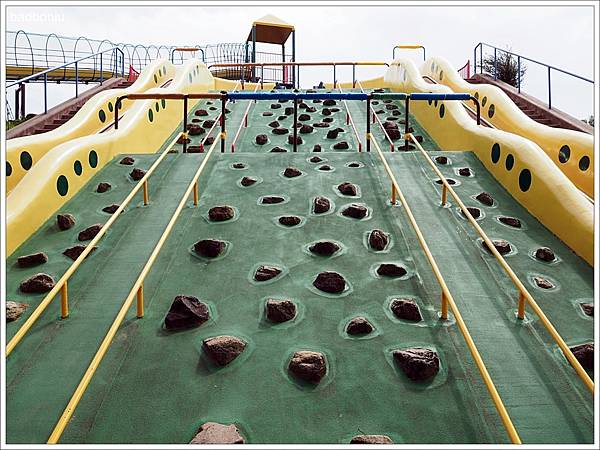 再來繼續又走一段不短的路到「高石兒童遊戲場」,波妞媽真的腳已經痠到要往生了!