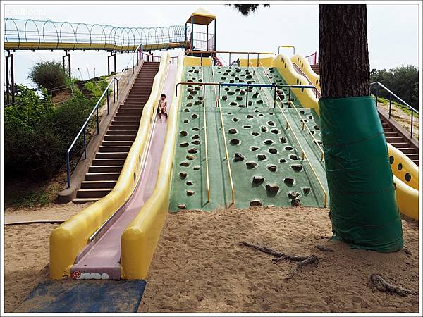 這裡也有長溜滑梯!而下方還有小小的攀岩場呢!