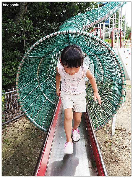 不過這滾輪的速度不是很快,害波妞小小失望了一下,所以溜一下咱們就往下一個「南兒童遊戲場」出發。