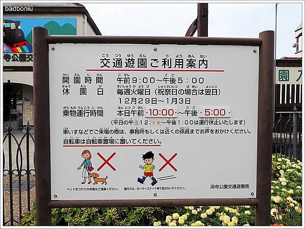 原來今天居然是公休日!真是晴天霹靂!波妞媽會想來這個公園主要就是想帶波妞坐小火、玩ga-cart,結果居然沒開!波妞媽真的很容易就遇到公休日,大家如果要來的話記得避開星期二喔!