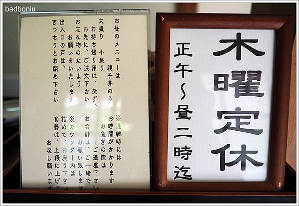 門片上很有歷史感的木片寫著:親子丼,另一片寫著:數量限定,現在不只擔心吃不到,還多了擔心是不是又遇到公休日?!