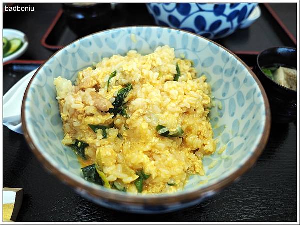 親子丼簡簡單單,除了丼飯外,還有附漬物及清湯。