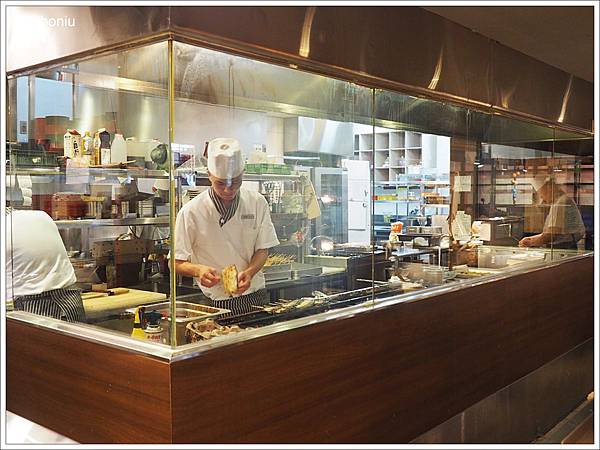 透明的廚房內還能看到烤鰻魚的料理狀況,廚師很忙碌地烤著鰻魚。