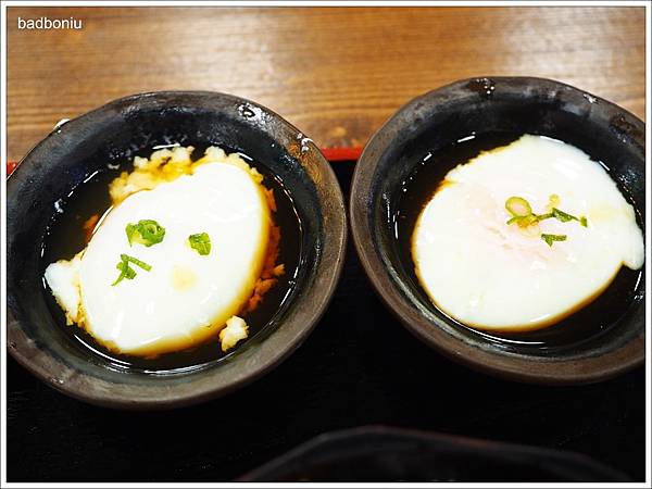 第三吃還可以加入溫泉蛋一起吃。 而這個就是比人家多一吃的地方啦,不過我們不習慣,還是分開吃,所以還是「三吃」
