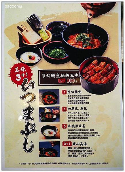 再來這一份是「鰻魚桶飯3+1吃」($690),硬是要比名古屋鰻魚三吃的鰻魚飯再多一吃~