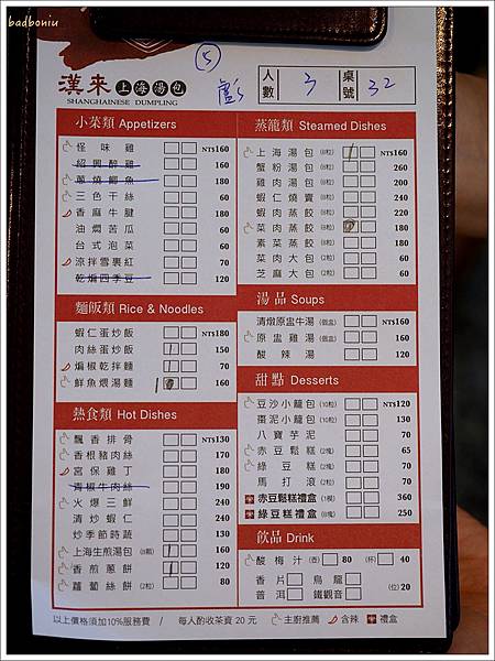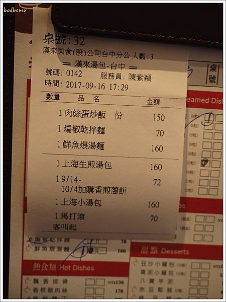 點餐的時候有點猶豫怕點太多,但之前在鼎泰豐的刻板印象就是餐點的份量不多,很自然的套用在漢來湯包上,但其實我大大的錯惹Orz...