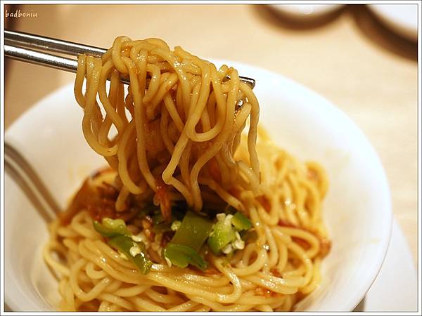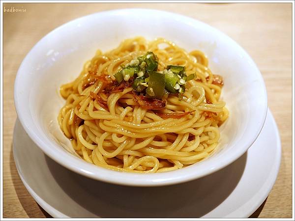 煸椒乾拌麵$70,第一道餐上來是麵,看起來簡單但蠻好吃的,上面的煸椒有一點點辣但又不會太辣,還有一點油蔥
