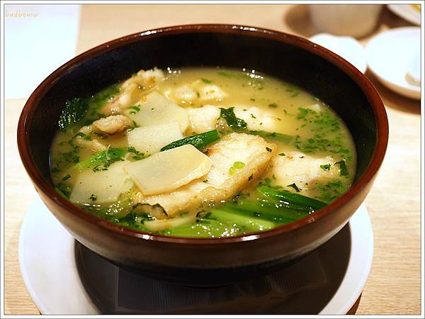 今天的魚是青衣,魚有先煎過再放進湯裡,吃起來很有彈性,好吃到把店員叫來問這是什麼魚XD