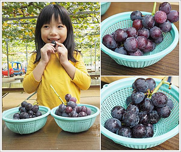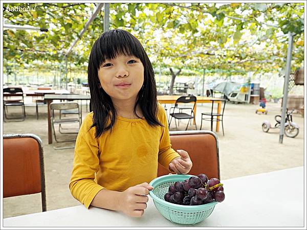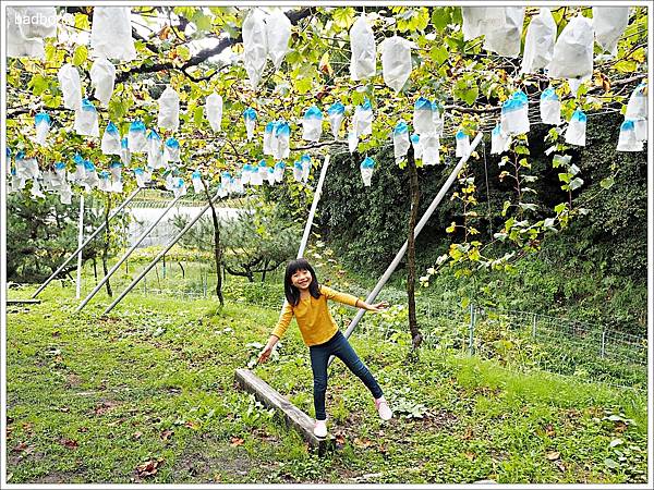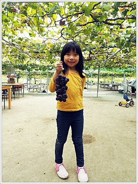從出發前就聽說今天行程要採葡萄的波妞一整個期待,所以在門口拍起照來特別開心的樣子XD