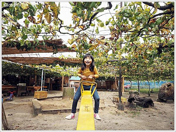 園區內除了葡萄田外還有一些小遊具:如沙坑、溜滑梯、小汽車…也可以去溪邊玩水抓魚或是跟兔子玩餵兔子,如果小朋友葡萄已經吃飽的話可以放心在園區裡遊玩。