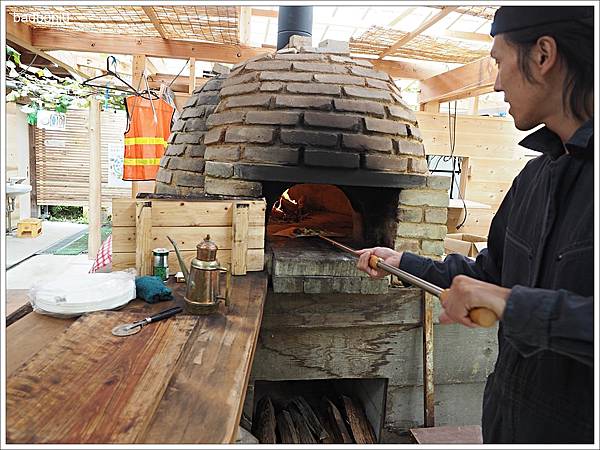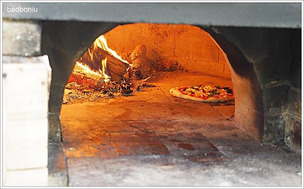 做好後店家會幫忙將PIZZA送進窯內現烤,真的是100%的柴燒窯烤喔~