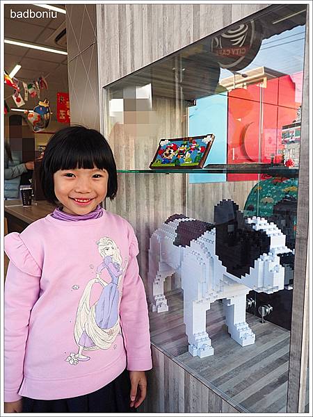 除了法國鬥牛犬外,仔細一看還有一個縮小版的積木小七,可愛程度跟店的積木主題外觀有得拼。
