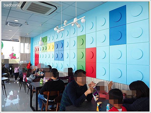 店內有還蠻寬敞的用餐休息區,牆面上也是滿滿的樂高積木造景,當然休息區也是滿滿的人XD