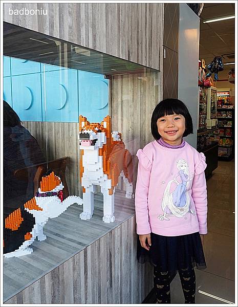 用餐區另一邊的櫃子裡則是積木做成的柴犬及貓咪,也是店內熱門的拍照點喔!