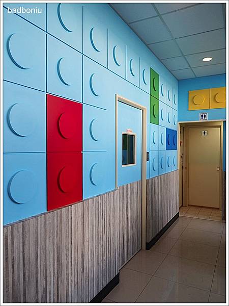 連廁所的外面也是積木牆,樂高積木控可以大拍特拍。