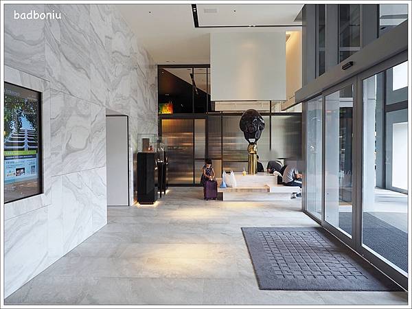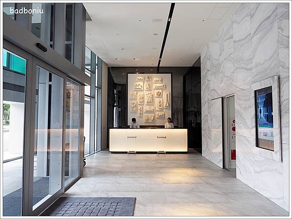 因為「台中大毅老爺行旅」的基地不大,所以大廳規模也不走氣派奢華路線;不用過多的裝飾,純白的大理石就已經透露出飯店的質感。
