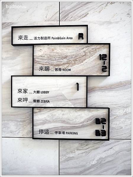 飯店樓高12層樓,房間數170間,空間規劃很簡單,在牆上的指示板上就能看出所有的公共設施。從指示板上可以看出沒有兒童遊戲室,所以看起來「台中大毅老爺行旅」是一間「大人味」的飯店。