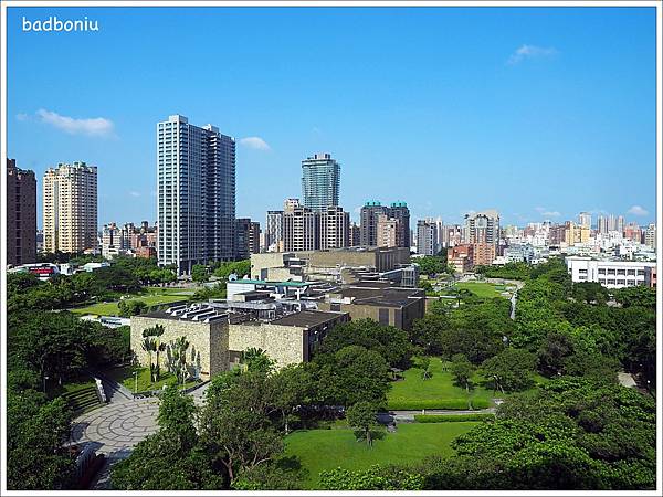 站在窗邊往外看,滿眼都是美術館及綠園道的綠意,還有台中的天際線盡在眼前,視野毫無阻礙。
