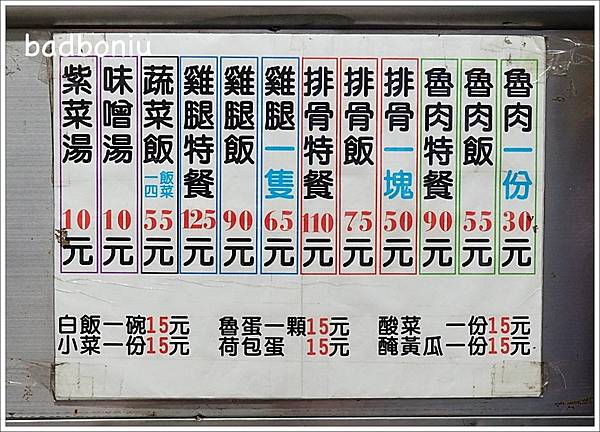 價目表,特餐多了三樣配菜及湯,所以價錢會比較貴一點。