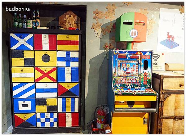 一旁的遊戲機雖然已經不能玩了,但也是許多人小時候的回憶,以前家附近的「柑仔店」一定都會擺上一台。遊戲機上方的郵筒是真的可以寄信的喔~可以將入住時飯店送的明信片填好投入郵筒內,旅店會幫忙郵寄喔~