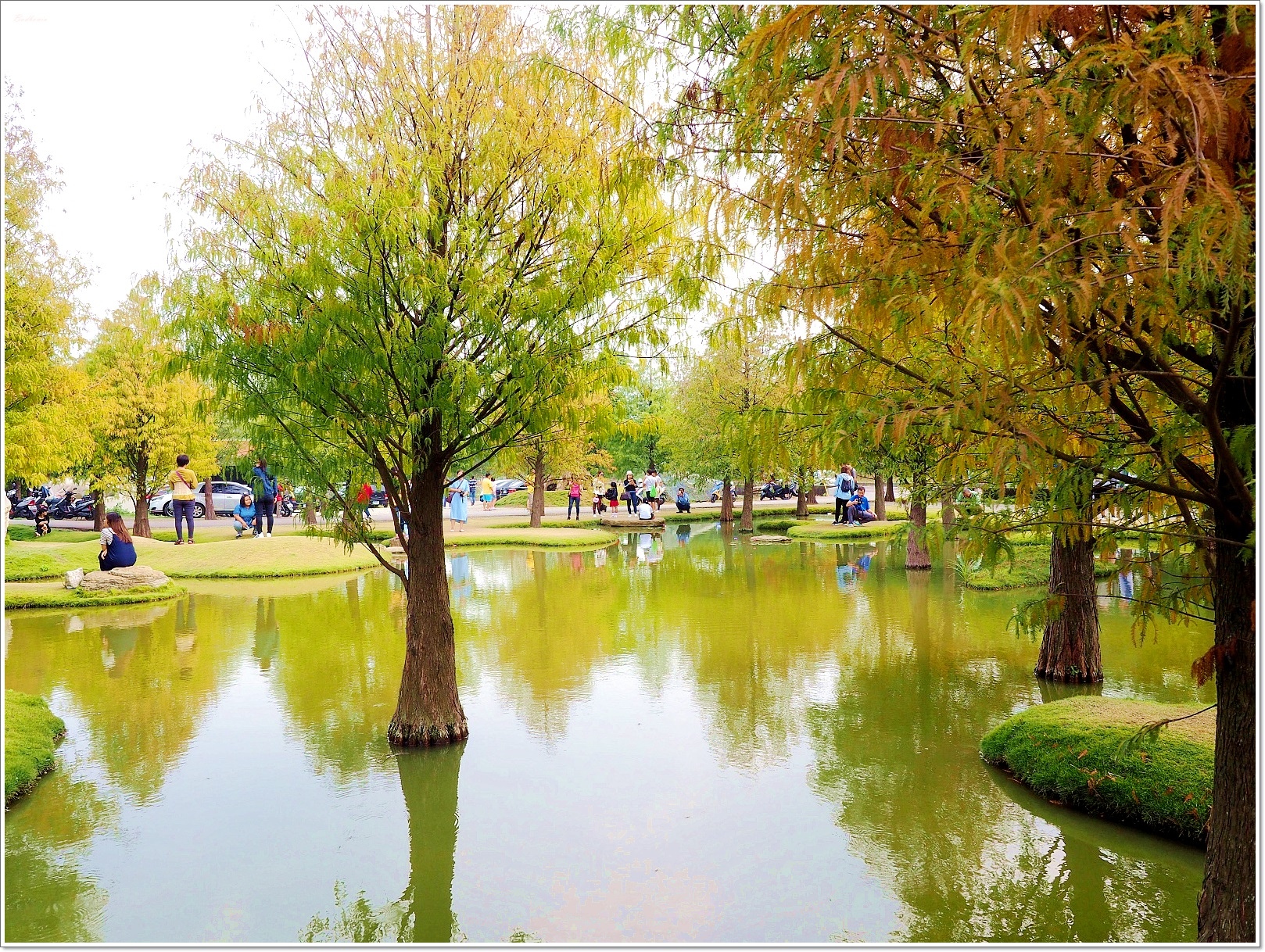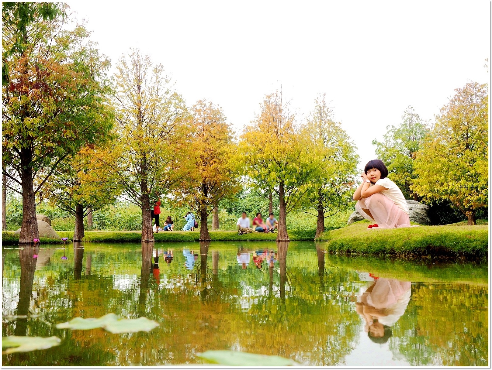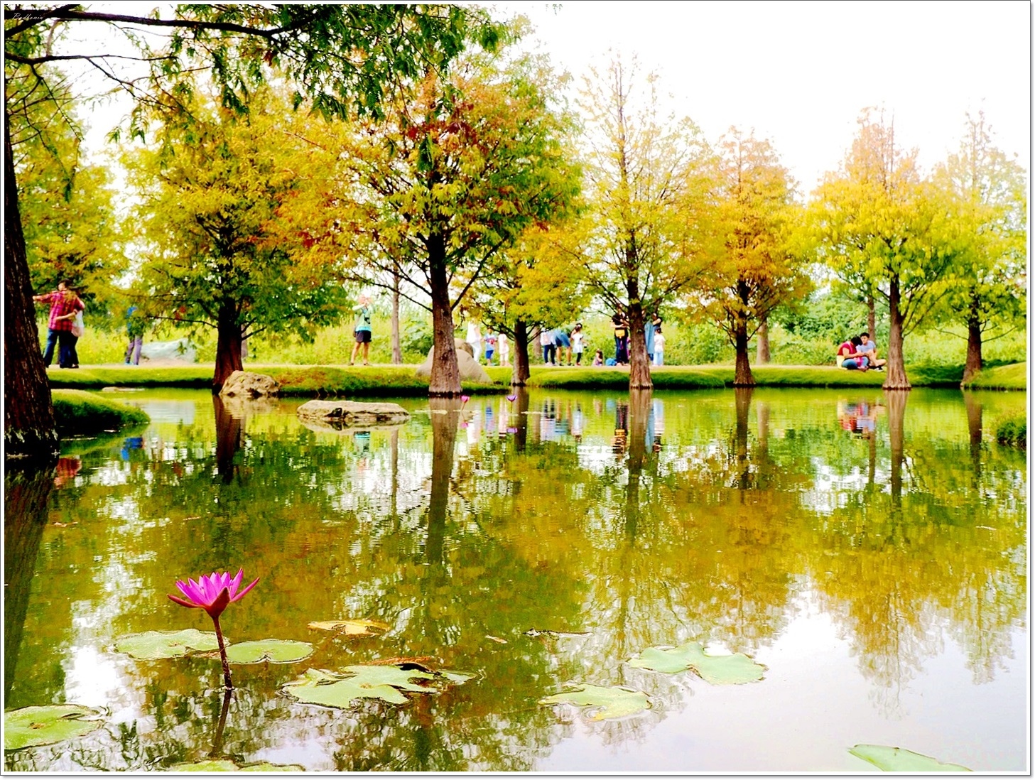 這座不算大的池塘,走一圈大概只要3分鐘,但卻可以拍個上百張照片,不過遊客也很多,大家都聞美景而來