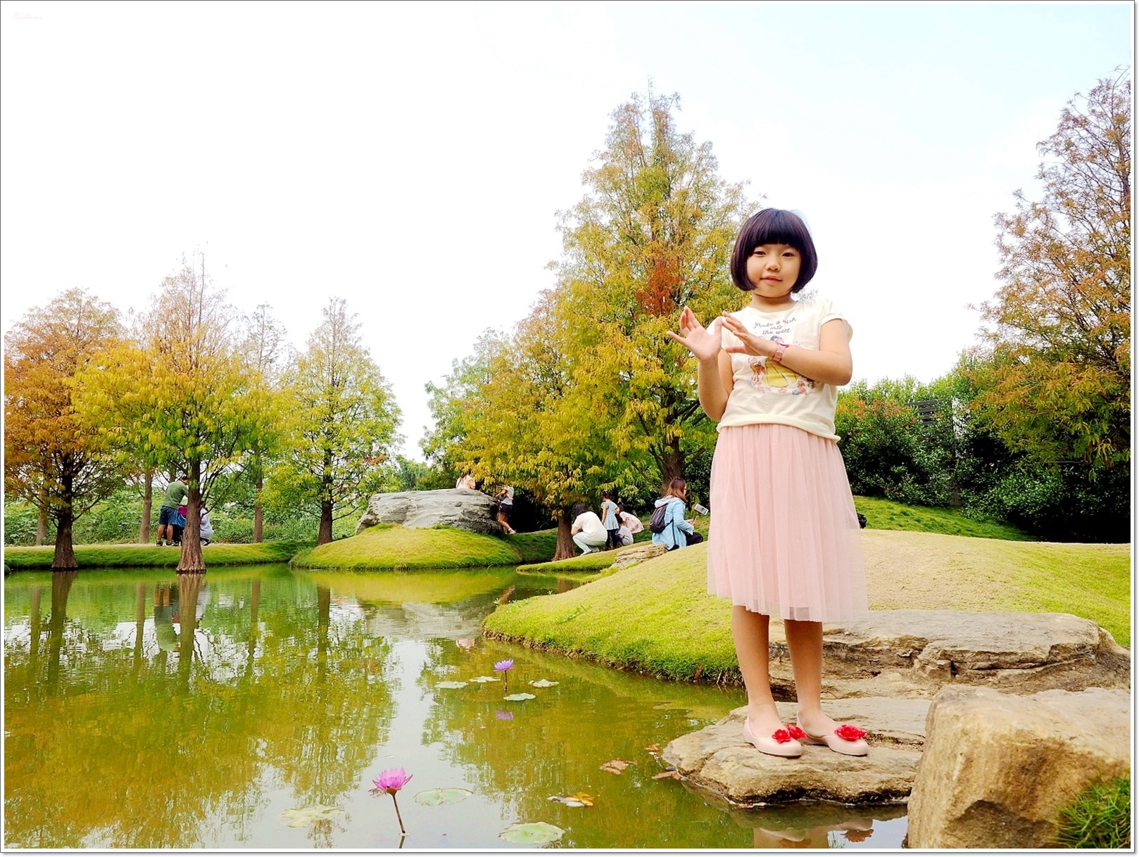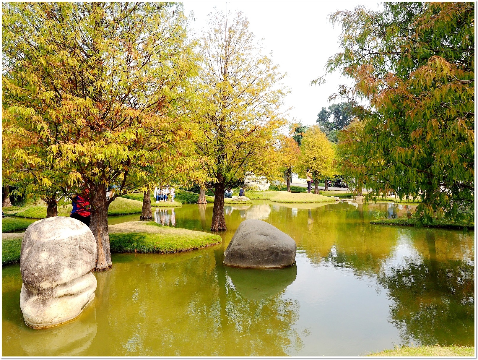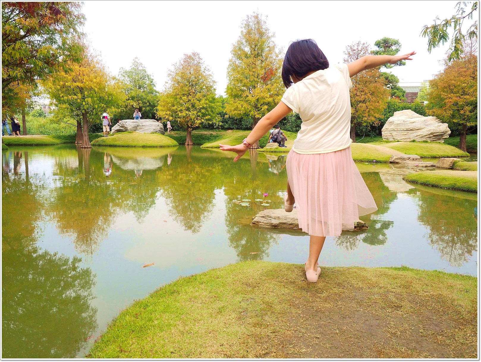 池塘中有個像台灣的小島,不知道是不是刻意設計的,大家都是愛呆丸啊~