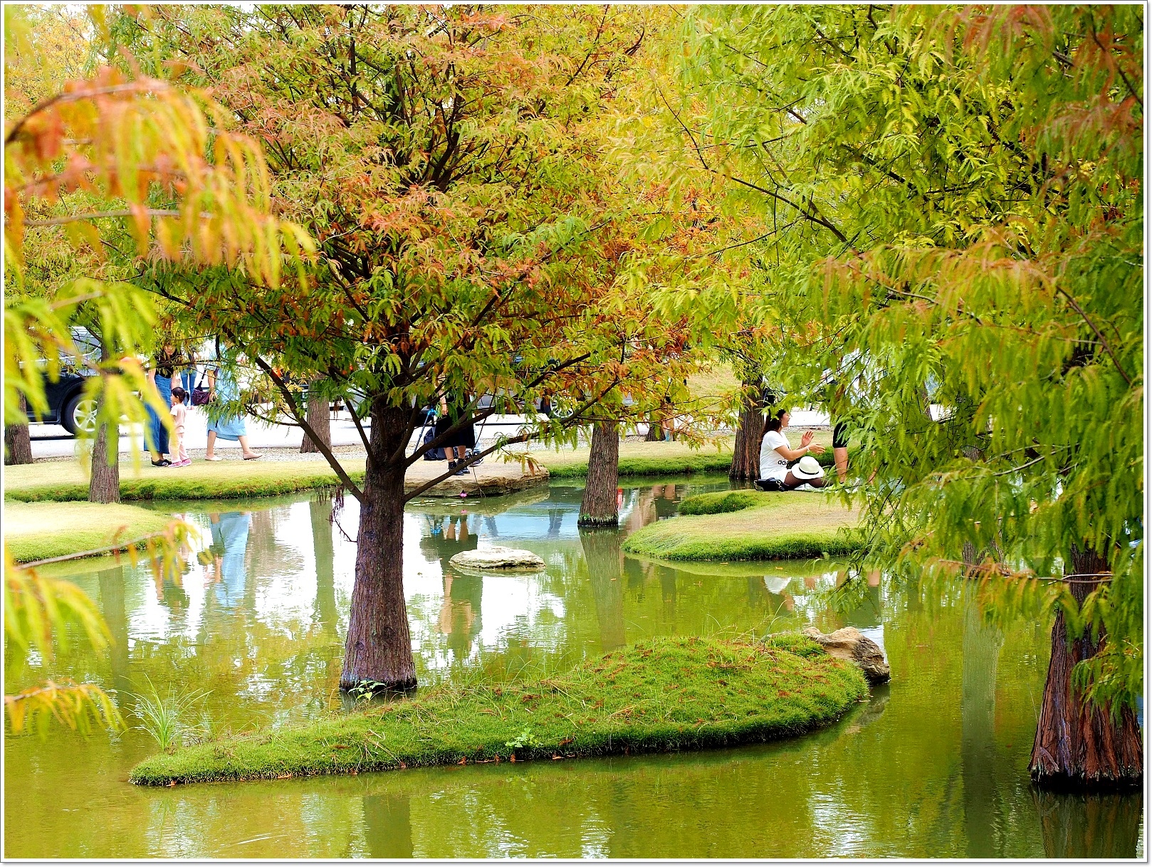 這個庭園的造景真的很漂亮,可能也因為有好的照顧與環境,此處的落羽松特別的美。今年很多地方因為水氣不足,落羽松都因為缺水而直接枯掉了。