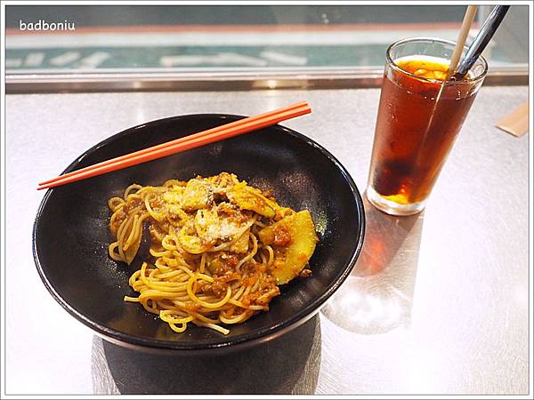 這一道是「茄子肉醬義大利麵」,用碗呈裝,份量看起來不多,份量大的人可以+40元讓麵加量。