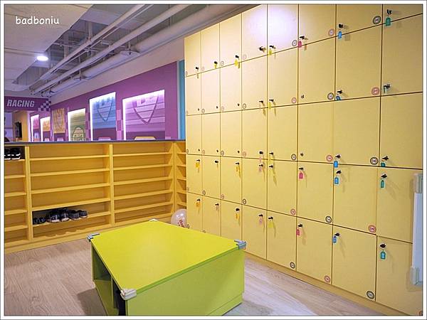 進入園區需要先量體溫、酒精消毒,旁邊有置物櫃及置鞋櫃,然後記得一定要著襪,不要忘記帶了。