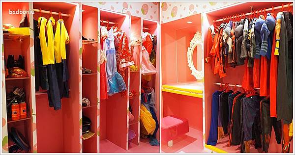 再過去有小朋友的換裝區,真的是超夢幻的更衣室,也很有舞台效果!我們拍的時候因為裡面有人正在更衣,不然布幕裡面有好大片的連身落地鏡。