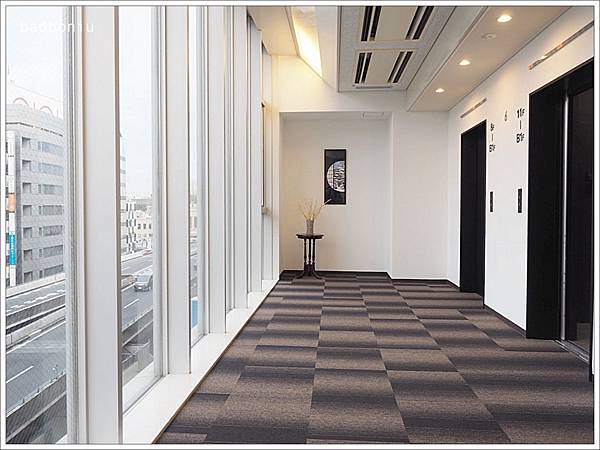 電梯前的空間很寬敞,而且還有大片落地窗。雖然有兩台電梯,但不連動,而且可以到達的樓層不一樣,所以電梯有的時候都要等上一下下。