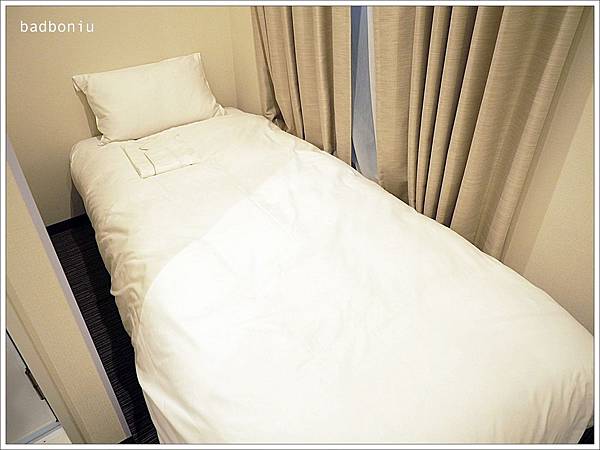 房間不大,但床倒是蠻大的,一張單人床應該有110cm喔~