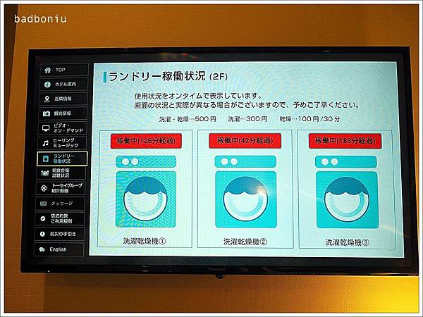 從房間的螢幕上可以看到目前洗衣機的使用情形,就不用一直焦慮搶不到洗衣機XD