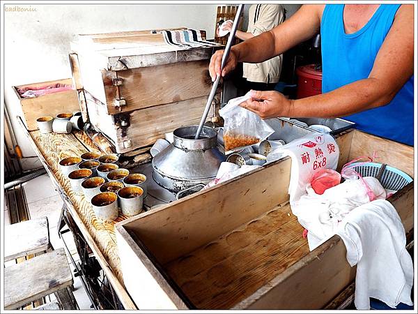 這個老攤子看起來就是我阿公一樣年紀,老闆舀湯的桶子更是超有歷史,簡直就像是去拍古裝劇的片場搬出來的一樣!