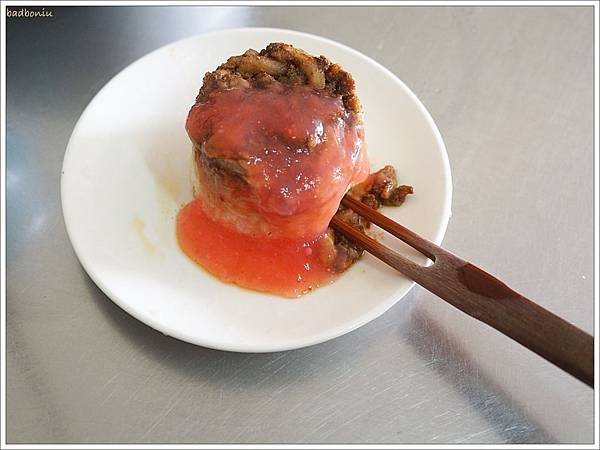 另一樣是米糕,這種筒仔米糕是連肉跟醬一起進去蒸的,跟油飯不太一樣。吃起來較濕軟,但肉燥比較入味,跟國華街的米糕是完全不一樣的東西,兩種我都很愛