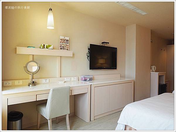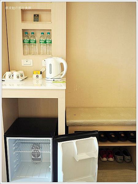客房裡都有提供免費的礦泉水及茶包,空的小冰箱也很方便冰買回來的東西。對了,冰箱有個開關要打開,冰箱才會運作喔~