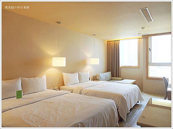 港景溫馨四人房萍數大小約7.3坪(24㎡),走白色極簡風,整體感覺起來也比之前住過的幾家康橋商旅新的感覺。