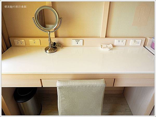 商務型的書桌上有個可以補光的修容鏡,女生保養及化妝都比較方便。
