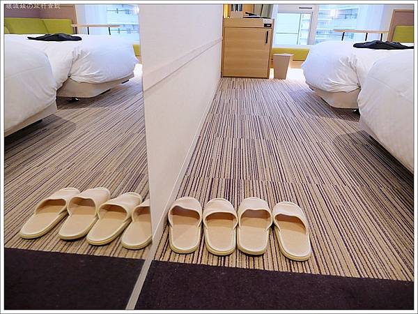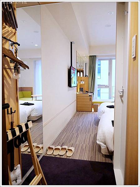 房間一打開門,在門口看就覺得寬敞,而且平日價格不高,覺得就算沒要去環球影城也可以選擇住在這裡。一進門的右手邊是浴室跟廁所,格局倒是蠻常見的。