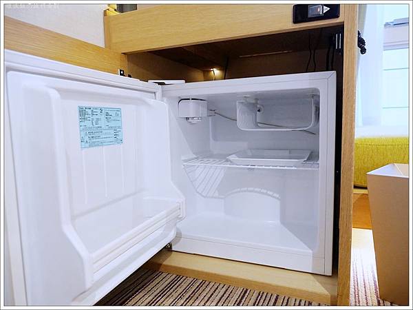 櫃子打開是冰箱,要使用冰箱記得將櫃子上的開關打開才會有電喔!