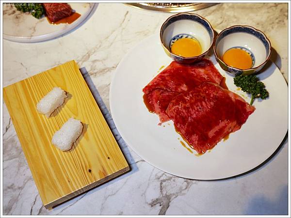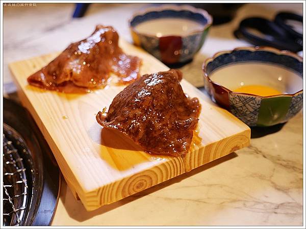 「月見和牛壽司(二貫)」$480,吃法也很獨特